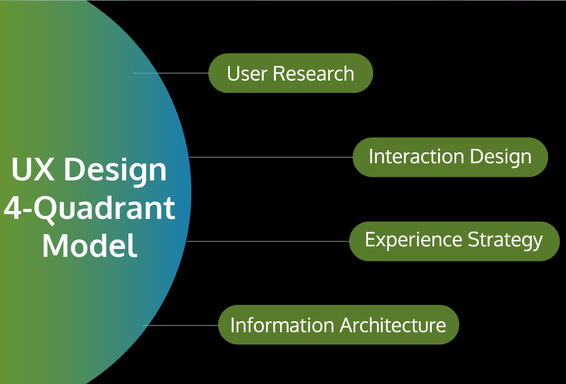 UX design is not merely one thing. Say for eg, would you you go to the same doctor for every time your body decided to act up? No. You'd go to a dermatologist for problems with your skin, an opthamologist for problems with your eyes, etc. Similarly big companies will have their own teams of specialized UX designs. UX specializations tend to fall into one of 4 categories commonly referred to as the Quadrant model (the 4 quadrants can overlap depending on the skills involved and the roles required). The 4 quadrants include:
